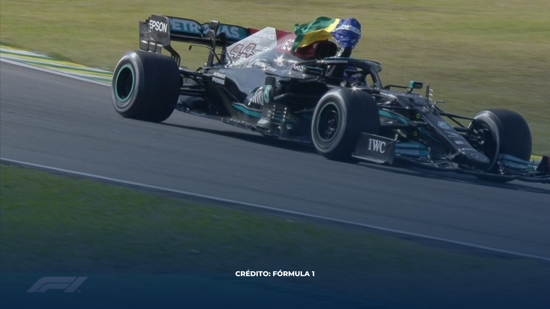 Foto: Lewis Hamiton homenageando Ayrton após vitória no GP do Brasil em 2021