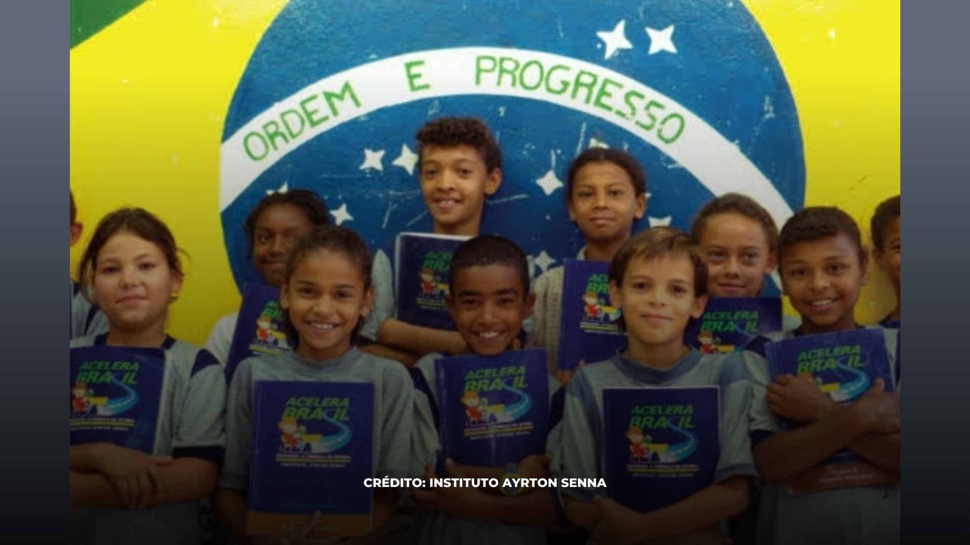 Foto: Crianças que receberam cadernos do Instituto Ayrton Senna