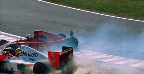 Foto: Batida entre Senna e Prost em Suzuka no ano de 1990.