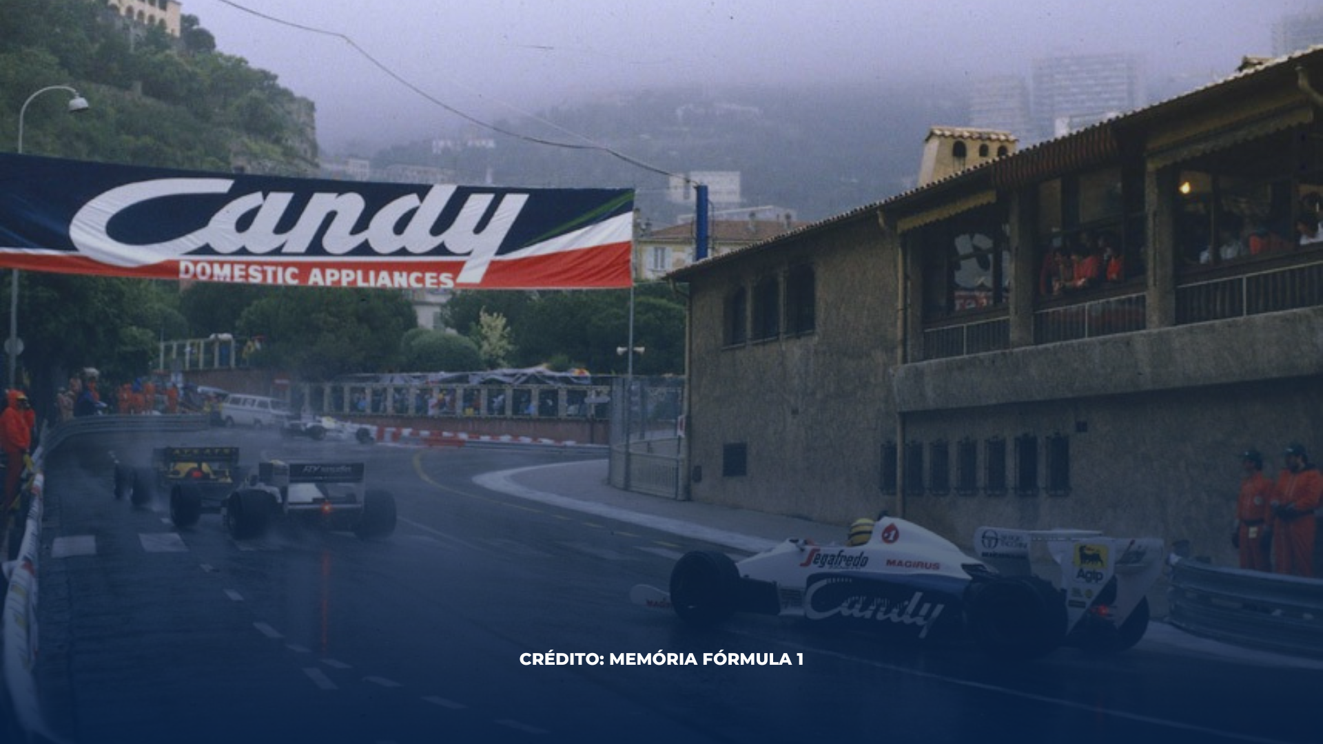 Foto: Senna comemorando o segundo lugar pela equipe Toleman em 1984 no autódromo de Mônaco.