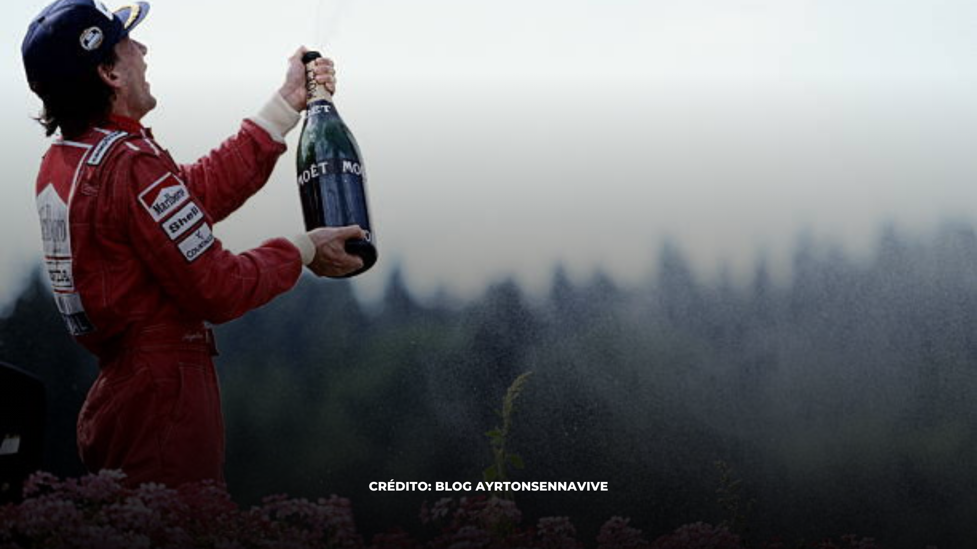 Foto: Ayrton comemorando uma vitória com o champagne